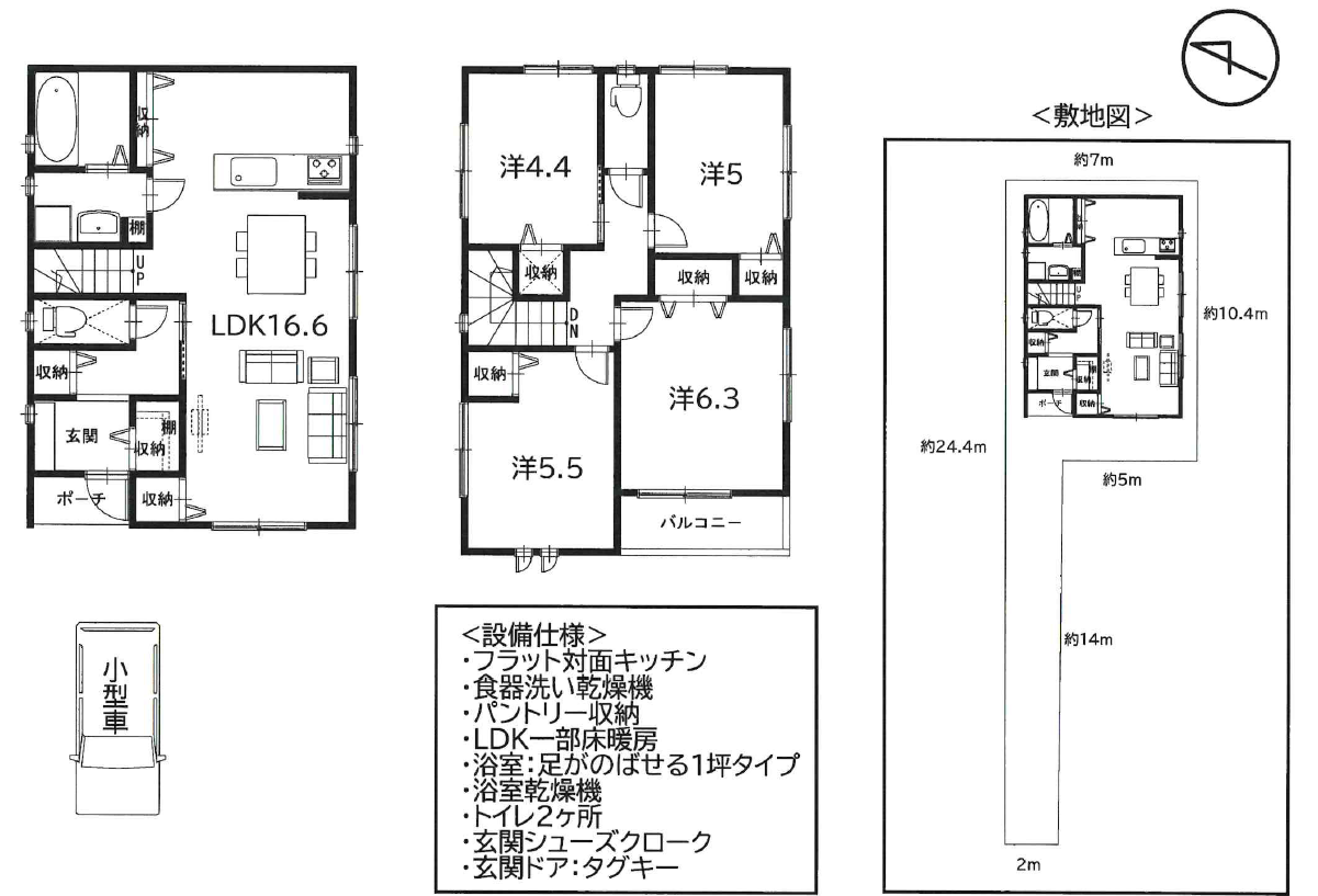| 建物面積 | 1F:約44.55㎡ 2F:約45.58㎡ 健延:約90.13㎡ |